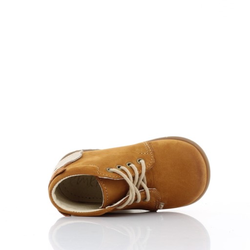 Коричневі черевики з мотивом лисиці - ідеальні для навчання ходьбі, виготовлені з натуральної шкіри найвищої якості. Взуття достатньо стійке та гнучке, внутрішня частина обшита м'якою шкірою, яка захищає від стирання. Шкіряна устілка - відповідно формує розвиток стопи. Регульована шнурівка. Вони мають широкий кінчик, що дає свободу пальцям. Гнучка та протиковзка підошва.