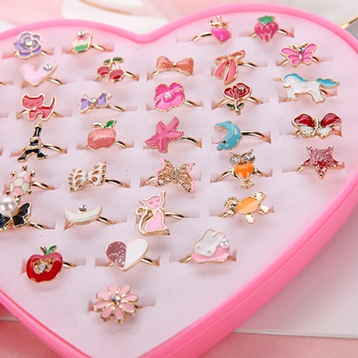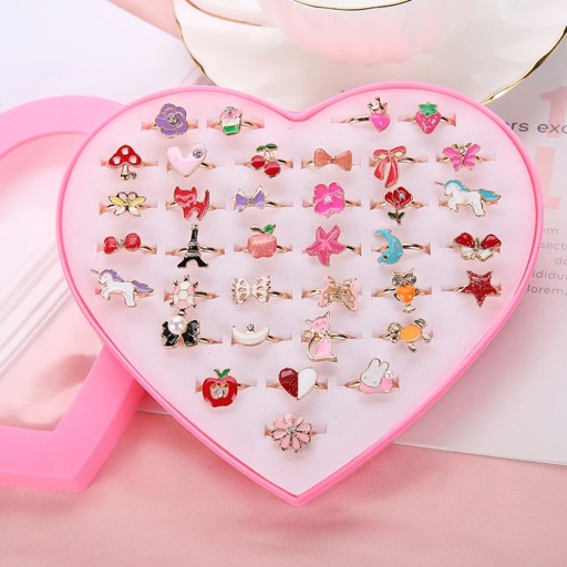 Кільця з 36 елементів з алюмінієвого сплаву зачарують ваших дітей. Сердечко, метелик, квітка та багато інших різнокольорових діамантових візерунків, дуже гарно. Можна використовувати як наповнювач для подарунків на день народження, наповнювач для піньяти, уявне чаювання, карнавал, скриню зі скарбами тощо.
