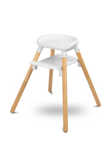 Bravo - високий стільчик для годування, який полегшує сидіння маленьких дітей разом з дорослими. Елегантний зовнішній вигляд і ніжні кольори сподобаються не тільки шанувальникам скандинавського дизайну. Bravo можна використовувати по-різному: як дитячий стільчик, низьке сидіння і табурет (високий і низький). Має два рівня регулювання підніжки (16 см і 24 см), що забезпечує комфорт для дітей старшого віку. Профільований піддон під час годування не дає нічого розсипатися на підлогу, а оббивка з екошкіри та пластикове сидіння сприяють швидкому та зручному прибиранню. Стійкість забезпечують чотири ніжки, повністю виготовлені з масиву дерева.