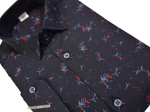 Елегантна темно-синя сорочка Chopica з синьо-червоними візерунками з довгим рукавом.