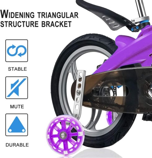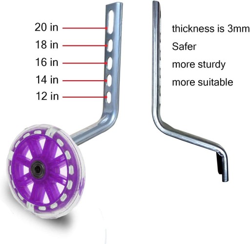 [Особливості]: Виготовлений з високоякісного металу, міцний, довговічний і безпечний. простий монтаж і можливість індивідуального налаштування. Коли колеса котяться, вони випромінюють різнокольорове світло, яке може викликати в них інтерес до навчання їзді.