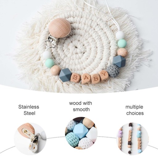 [Матеріал]: затискачі для дитячої пустушки, високоякісні інтегровані бусини з бука та силікону, красива текстура, зручні та гладкі на дотик, не пошкоджують одяг.