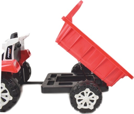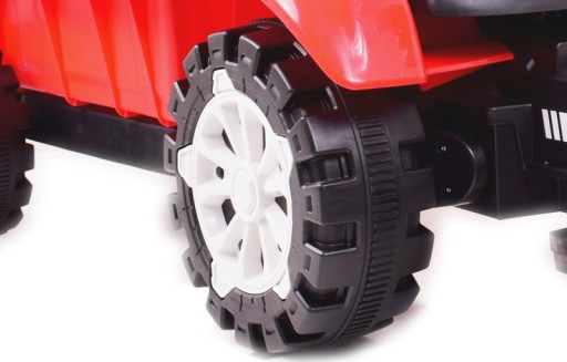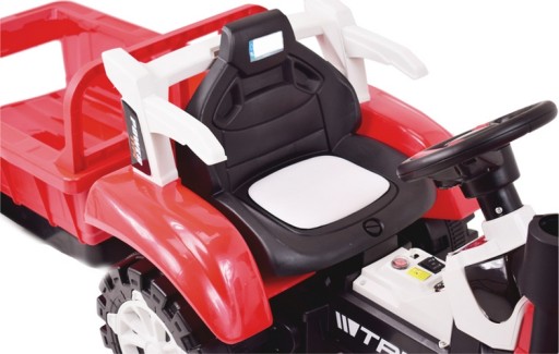 Трактор з причепами і причепом на підйомнику, а також світло і звук, які працюють від двох потужних двигунів по 45 Вт, неодмінно зацікавлять юних трактористів.