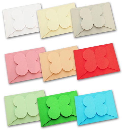 - спеціально розроблений і виготовлений нами, повністю закривається, безклеючий конверт розміром 98 мм x 72 мм, виготовлений з кольорового картону вагою 250 г.