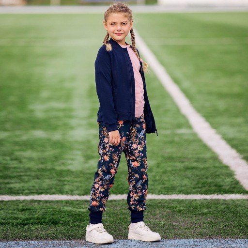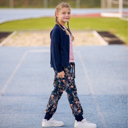Штани софтшел для дівчинки з красивим квітковим мотивом. Виготовлені в Польщі з повністю вітронепроникної тканини, вони ідеально підходять для перехідних сезонів. Штани мають три практичних шари: