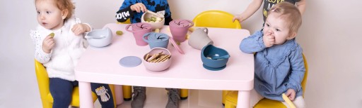 Тарілка і миска з присоскою створюють ідеальний набір для навчання самостійному харчуванню