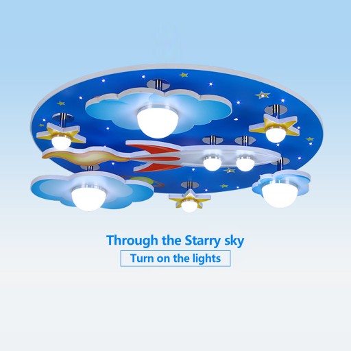 Дизайн: ракети, хмари та планети, проста, доступна модель, повна коміксів: світлодіодні панелі, як зоряне небо, ідеально підходять для прикраси та освітлення у вітальнях. Стельовий світильник не має мерехтіння, слабкого загасання світла та високої ефективності передачі кольору.
