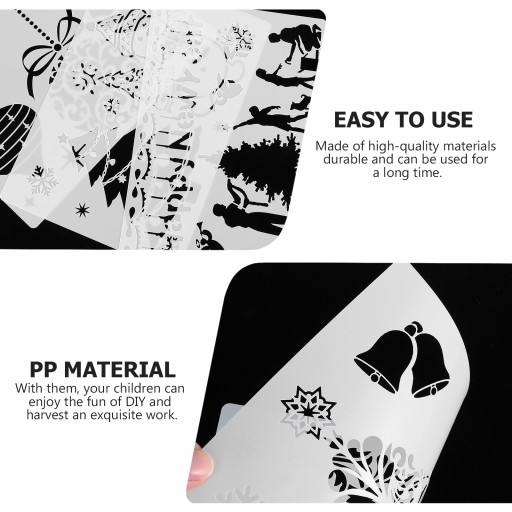 Розроблені з класичними різдвяними візерунками, ці різдвяні трафарети для малювання характеризуються хорошою гнучкістю та довговічністю. Виготовлені з матеріалів найвищої якості, ці багаторазові трафарети легко миються після використання, їх легко носити з собою та безпечні для дітей. чудові шаблони малюнків для різдвяних прикрас своїми руками.