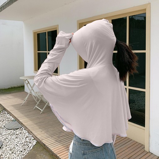 Жіноче літнє захисне пальто з довгими рукавами і капюшоном з сонцезахисним козирком