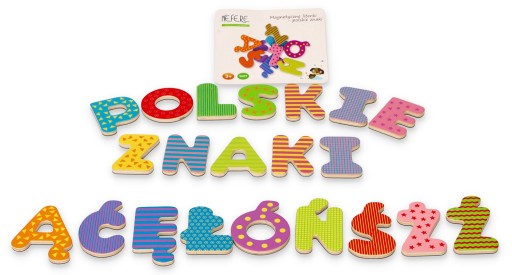 Магнітні дерев'яні літери з польськими ієрогліфами 69 шт.