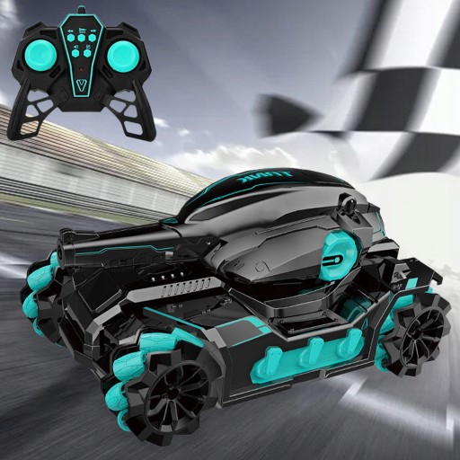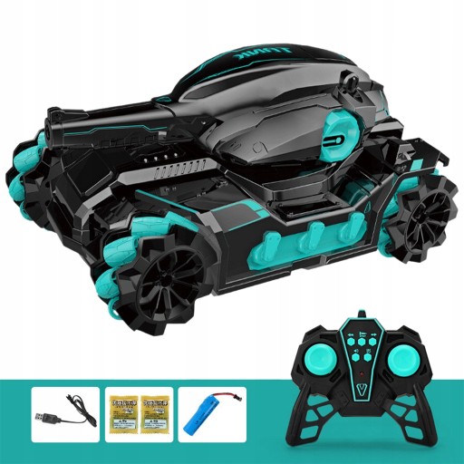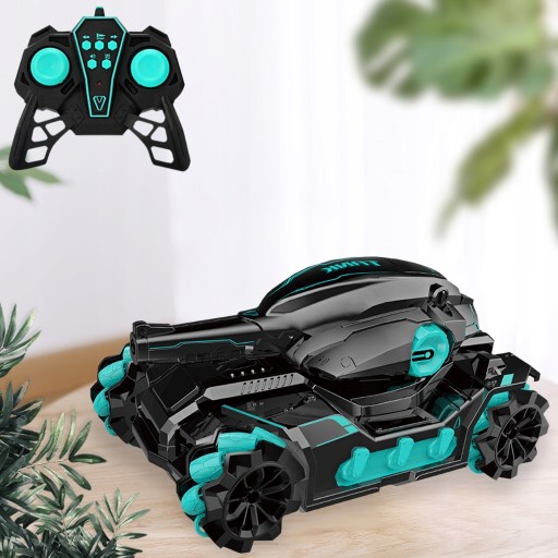 Електричний радіокерований танк з водяною бомбою. Радиоуправляна іграшкова машина. Трюковий автомобіль для хлопчиків. Подарунки. Синій одиночний контроль