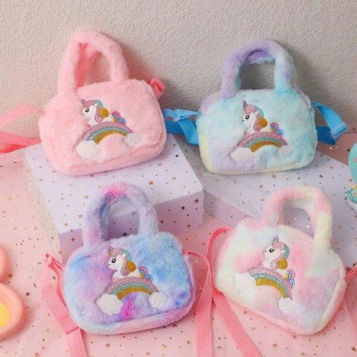 Ця дитяча сумка з єдинорогом ідеально підходить для вашого малюка, який любить єдинорогів і хоче носити свої речі стильно. Виготовлена з плюшевого матеріалу, ця сумка-месенджер приємна на дотик і стійка до зношування під час щоденного використання.