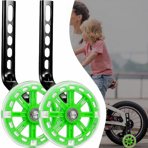 СВЯТИЙ ДИЗАЙН: навчальні колеса мають крутий, світський дизайн, який зацікавить вашу дитину та зробить навчання їзді на велосипеді задоволенням. Крім того, завдяки тому, що тренувальні колеса підсвічуються під час їзди, дитина більш помітна і безпечна вночі або в темряві.
