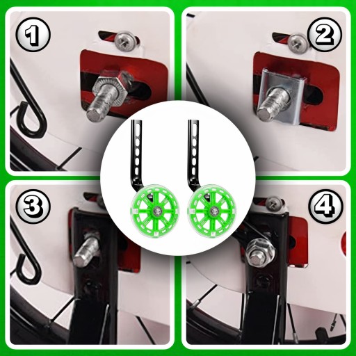 Якщо ви шукаєте спосіб швидко та легко підготувати велосипед вашої дитини до перших спроб їзди, наші тренувальні колеса — ідеальне рішення! Монтажні аксесуари, що входять у комплект, роблять монтаж дуже простим і швидким, заощаджуючи ваш час і нерви. Завдяки їм ваш малюк зможе насолоджуватися першими поїздками на велосипеді без проблем з рівновагою. Наші навчальні колеса не тільки практичні, але й безпечні та міцні, що гарантує тривале використання