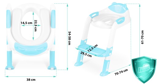 Завдяки ергономічному дизайну накладка на унітаз зручна і відповідає формі хребта дитини, а її висота регулюється, тому підходить практично до всіх моделей сидінь.