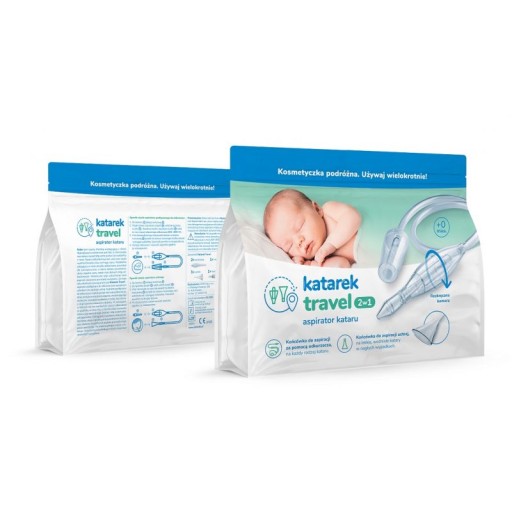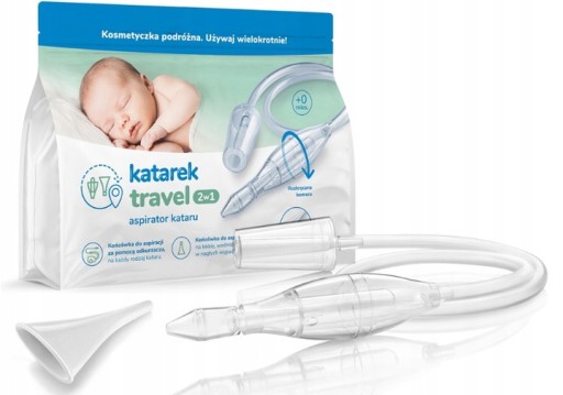 Katarek Travel - це наш новий пристрій 2-в-1, який дозволяє витягти нежить у вашої дитини скрізь, куди ви не можете взяти пилосос.
