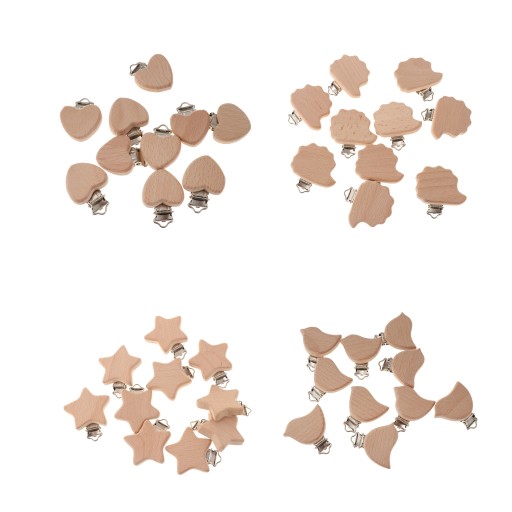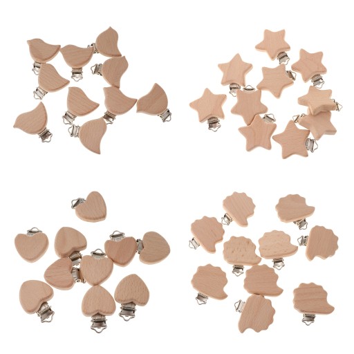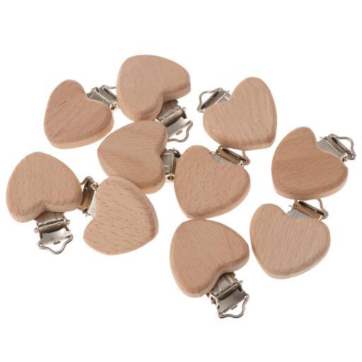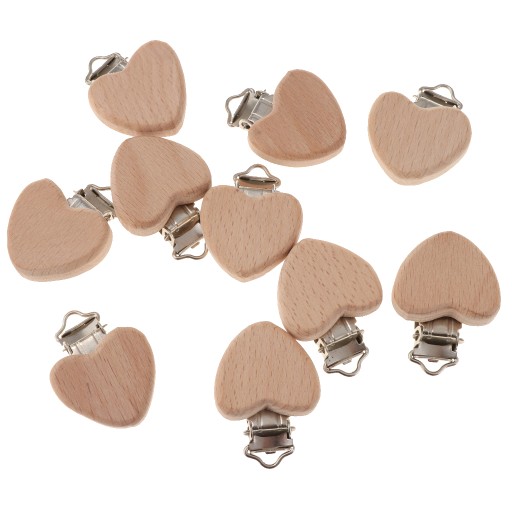 10 дерев’яних букових тримачів для дитячих пустушок у формі сердечка для прорізування зубів