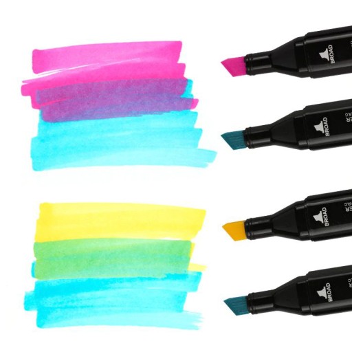 Маркери, які використовуються на папері, не пошкоджують його поверхню (не розмочують папір), легко розмішуються і наносяться. Завдяки цьому ви отримаєте цілу гаму проміжних кольорів, створите нові тональні поєднання та здійсните точне й тонке розтушовування.