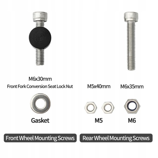 У комплект входять усі фурнітури для легкого встановлення (2x гвинти M5, 1x гвинт M6, 1x шайба, 1x переходна гайка, 4x гвинти)