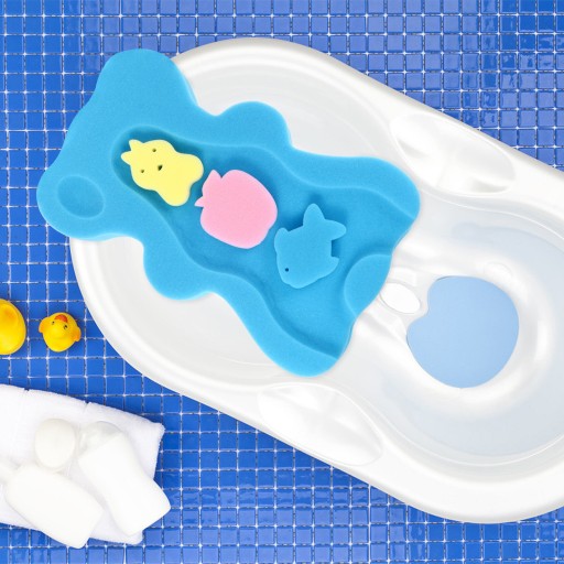 Цей продукт використовується для купання дитини для підтримки голови, шиї та спини дитини. Виготовлений з губки, він гнучкий, зручний і дихаючий. Щоб забезпечити комфортну гігієну новонародженому, цю протиковзку губку можна використовувати окремо або як вкладиш для ванни.