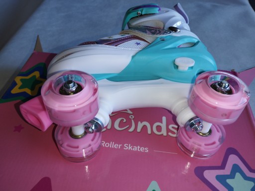 численні червоні та фіолетові роликові ковзани з різнокольоровими булочками!!