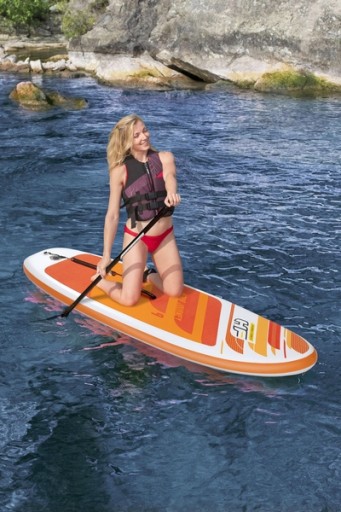 Дошка також оснащена повідцем, завдяки якому ви ніколи не відійдете від дошки, і зручною дорожньою сумкою, яка робить транспортування надувної дошки дуже приємною.