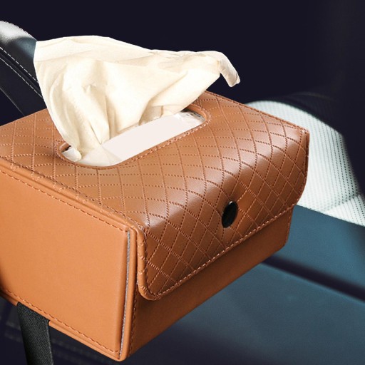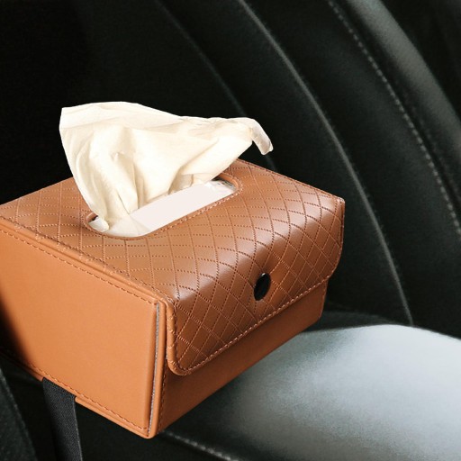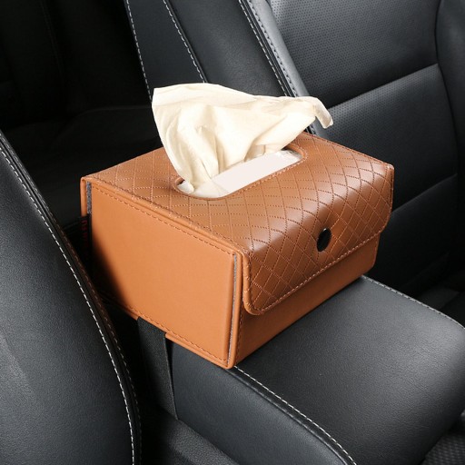 Коробка для серветок автомобіля. Міцна шкіра PU для офісу та автомобіля. Коричневий