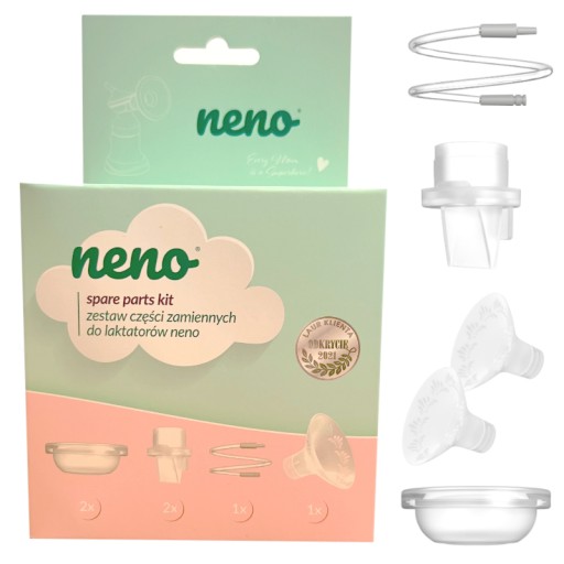 Молоковідсмоктувачі Neno складаються з елементів, які з часом зношуються природним шляхом. Змінні компоненти можна знайти в наборі Neno Spare, який включає: 2 x мембрану, 2 x клапан, воронку та дренаж.