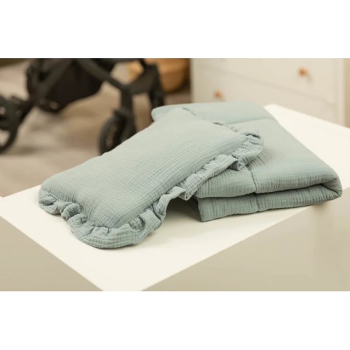 У комплект входить подушка і ковдра з приємної на дотик нитки. Набір ідеально підійде в коляску, коляску або як м'який килимок для малюка. Саму подушку можна використовувати як м'яку іграшку. Комплект виготовлений з двох матеріалів: всередині - 100% бавовна, а зовнішній - м'який муліне.