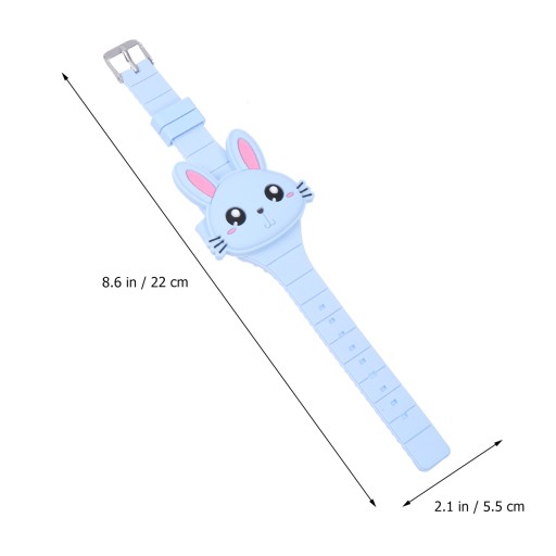 Годинник - це дитяча іграшка у формі мультяшного кролика. Виготовлений із силіконового матеріалу, міцний і міцний у використанні протягом тривалого часу. Мультяшний дизайн дуже цікавий. Легко і комфортно носити, не пошкоджуючи шкіру малюка. Ідеально підходить для сувенірів на свято дитини, подарунків на день народження дітей, подарунків.
