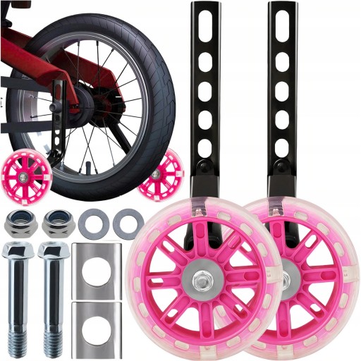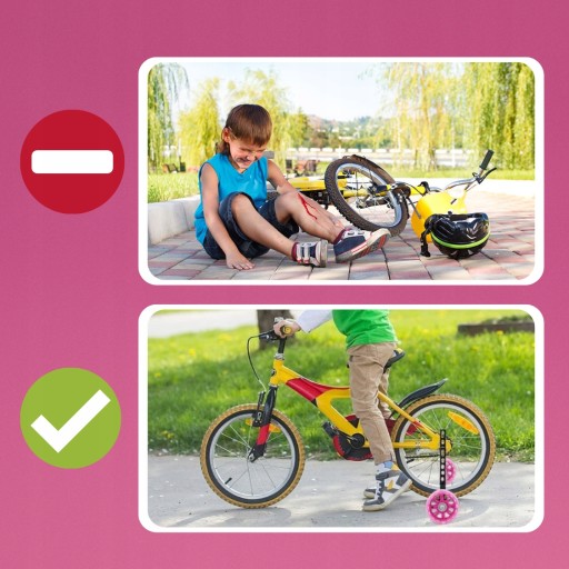 ПІДГОТУЙТЕ ВЕЛОСИПЕД СВОЄЇ ДИТИНИ БЕЗ ПРОБЛЕМ! Якщо ви шукаєте спосіб швидко та легко підготувати велосипед вашої дитини до перших спроб їзди, наші тренувальні колеса — ідеальне рішення! Монтажні аксесуари, що входять у комплект, роблять монтаж дуже простим і швидким, заощаджуючи ваш час і нерви. Завдяки їм ваш малюк зможе насолоджуватися першими поїздками на велосипеді без проблем з рівновагою. Наші навчальні колеса не тільки практичні, але й безпечні та міцні, що гарантує тривале використання