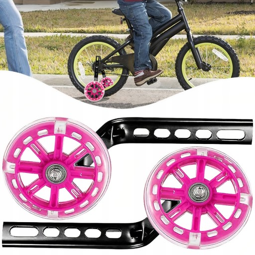 ПІДНІМІТЬ НАВЧАННЯ ВЕЛОСИПЕДОМ НА НОВИЙ РІВЕНЬ! Навчитися їздити на велосипеді може бути важко для дитини, але наші тренувальні колеса з крутим сяючим дизайном обов’язково зацікавлять вашу дитину та зроблять навчання веселим. Світлові навчальні колеса не тільки естетичні, але й функціональні - під час їзди в темний час доби вони роблять дитину більш помітною, що підвищує її безпеку. Крім того, наші тренувальні колеса легко збираються, що дозволяє швидко підготувати велосипед вашої дитини до перших спроб їзди. Завдяки їм ваш малюк може насолоджуватися їздою на велосипеді та розвивати свої навички з повним комфортом і безпекою.