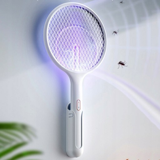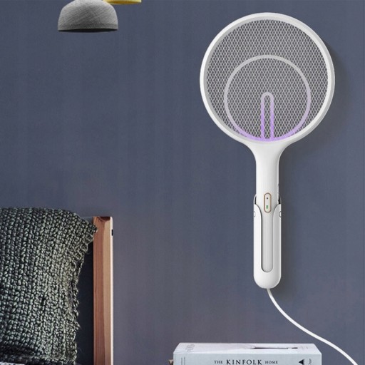 Ракетку для жуків, яка постачається з настільною підставкою для заряджання та настінною підставкою для заряджання, можна розмістити на столі, тримати в руках і повісити на стіну, як забажаєте.