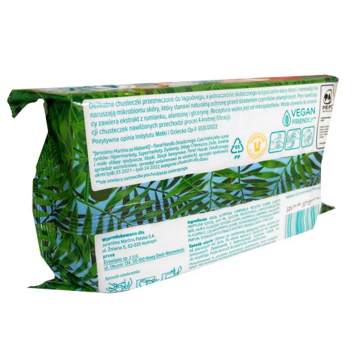 Нейтральний рН: серветки мають нейтральний для шкіри рН, що робить їх ніжними та не подразнює шкіру дитини.