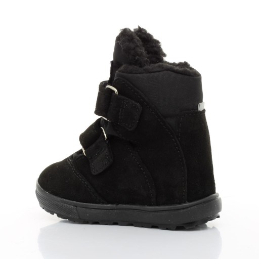 Чоботи чорного кольору, виготовлені з натуральної шкіри з водонепроникною та дихаючою мембраною TE-POR. Взуття з гідрофобізованої шкіри - з підвищеною стійкістю до води. Взуття достатньо стійке та гнучке, внутрішня частина обшита хутром, що захищає ноги від холоду. Профільована устілка - формує правильний розвиток стопи. Застібка регулюється за допомогою двох липучок, дуже добре підходить. Гнучка та протиковзка підошва.