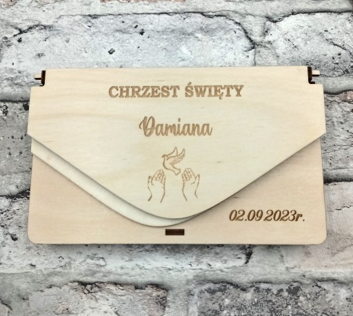 ДЕРЕВ'ЯНА Скринька КОНВЕРТ ДЛЯ ГРОШЕЙ В ПОДАРУНОК СУВЕНІР ТАЇНСТВА ХРЕЩЕННЯ ДИТИНИ