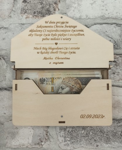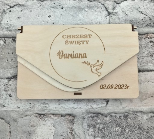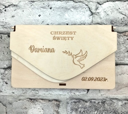 Дерев'яний конверт для грошей з побажаннями стане унікальним подарунком до Таїнства Хрещення.