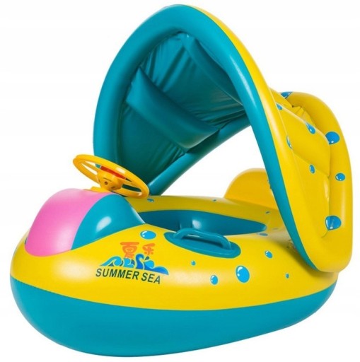 Дитячий надувний матрац у формі понтона з дахом і кермом виготовлений з якісного міцного ПВХ пластику. Це забезпечить безпеку, масу задоволення під час купання в басейні чи озері та допоможе навчитися плавати.