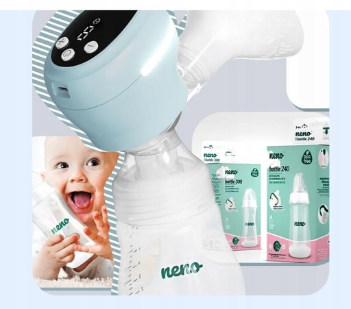 Усі молоковідсмоктувачі та пляшечки Neno сумісні між собою, що дає вам свободу вибору розміру пляшечки на ваш смак. Пляшка підключається безпосередньо до пристрою. У набір входить пляшечка для годування 180 мл, яку можна вільно замінити на 150, 240 або 300 мл, залежно від потреб і віку дитини.