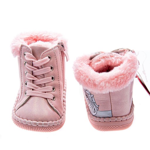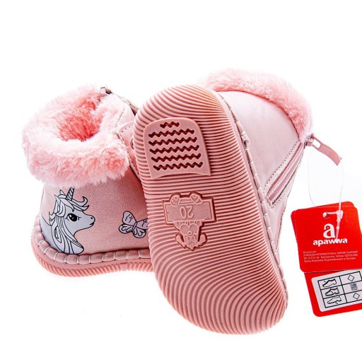 Зовнішня сторона виконана з екологічної шкіри. Внутрішня частина виконана з м'якого і густого хутра, також утеплена устілка взуття.