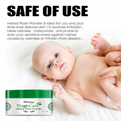Функція: цей порошок можна використовувати для полегшення висипу, свербіння, почервоніння та інших проблем зі шкірою, спричинених потом і тертям.