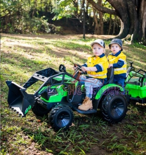 Трактор 720-Т з м'якими колесами EVA, з причепом, який працює від двох потужних двигунів по 200 Вт, неодмінно зацікавить маленьких трактористів.МЕГА СИЛА! Ця модель розганяється до 10 км/год!