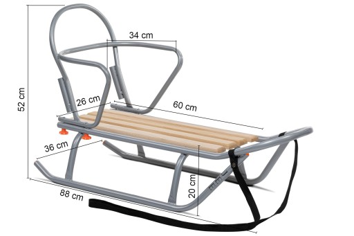 Санки виготовлені польським виробником з товстої сталевої труби та міцного сидіння з букових дощок. Наші санки мають широку стійку, тому їх важко перекинути. Спинка була посилена для безпеки дитини, що відрізняє наші санки від інших, представлених на ринку.