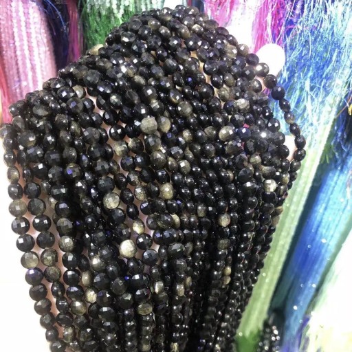 Нові обсидіанові сплющені грановані намистини з натурального каменю для виготовлення ювелірних виробів