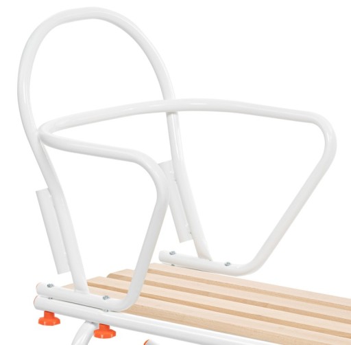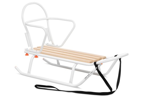 Санки виготовлені польським виробником з товстої сталевої труби та міцного сидіння з букових дощок. Наші санки мають широку стійку, тому їх важко перекинути. Спинка була посилена для безпеки дитини, що відрізняє наші санки від інших, представлених на ринку.