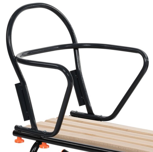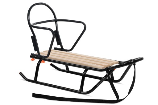 Санки виготовлені польським виробником з товстої сталевої труби та міцного сидіння з букових дощок. Наші санки мають широку стійку, тому їх важко перекинути. Спинка була посилена для безпеки дитини, що відрізняє наші санки від інших, представлених на ринку.