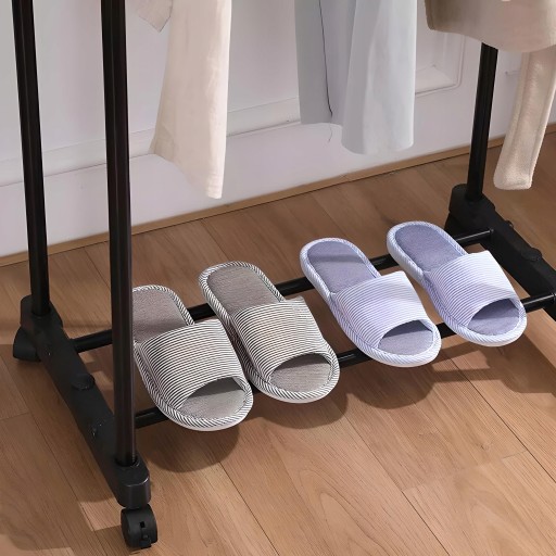 Міцна конструкція: вішалка виготовлена з металу, що забезпечує довговічність і стабільність. На ньому можна безпечно зберігати одяг і взуття, не турбуючись про його довговічність.