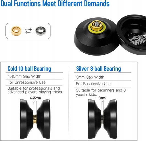 2 комплекти для зберігання YoYo постачається з 2 комплектами підшипників, підшипник із нереактивного золота підходить для професійних або досвідчених гравців. V-подібна конструкція зменшує тертя, тому YoYo може обертатися довше. Срібні шарикопідшипники підходять для новачків або дітей. Високоякісний матеріал Це йо-йо виготовлено з алюмінієвого сплаву, який підтримує стабільну та збалансовану швидкість обертання. Високоякісна технологія обробки JoJo використовує технологію обробки анодованої поверхні, яка не вицвітає та не може бути легко подряпана після багаторазового полірування. УПАКОВКА Набір Yoyo включає один Yoyo, рукавичку, 5 струн, 2 підшипники та інструкцію з експлуатації, яка може бути недоступною польською мовою. Примітка. Стрінги поставляються у довільних кольорах. ІДЕАЛЬНИЙ ПОДАРУНОК Доступний у п’яти кольорах і з 2 типами журналів, ним можуть користуватися як новачки, так і професіонали, що робить його чудовим для родини та друзів.