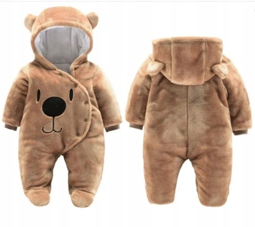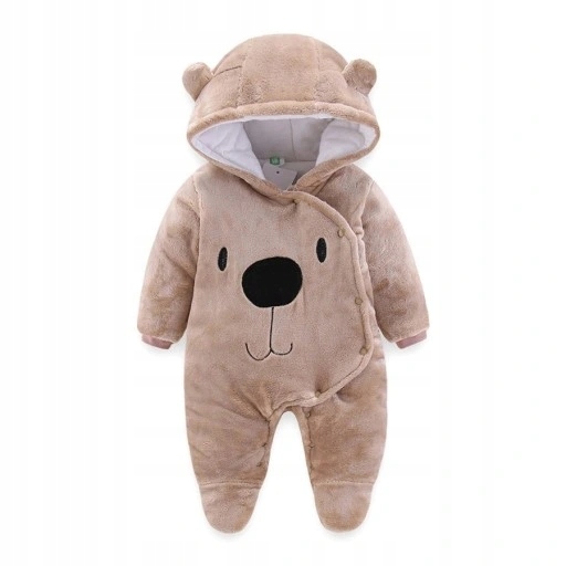 Утеплений костюм ведмедика - чудовий одяг для вашої малечі: висока якість виготовлення - м'який плюшевий матеріал, дуже приємний на дотик, суцільний комбінезон застібається на гудзики, швидко і легко одягається, теплий , з довгими рукавами - ідеально підходить для холодних днів, капюшон з декоративними вушками, довгі рукави зі зручними манжетами