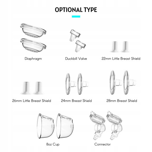 Тип: Мембранний/качкодзьобовий клапан/Кришка грудної клітки 22 мм/Кришка грудної клітки 26 мм/Кришка грудної клітки 24 мм/Кришка грудної клітки 28 мм/Чашка 8 унцій/Шарнір (додатково)